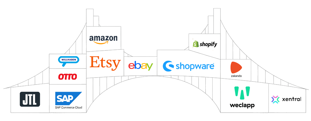 Nahtlose Integration mit deinem Shop- oder Warenwirtschaftssystem. Egal, welches Shopsystem du nutzt – wir verbinden deinen Onlineshop mit führenden Marktplätzen. Unsere Plattform ist vollständig kompatibel mit den gängigsten Lösungen, damit du direkt starten kannst.